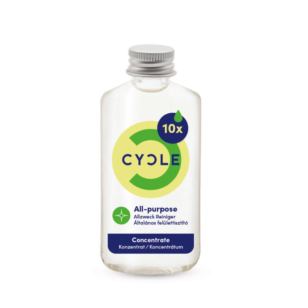 A CYCLE hatékony, méreganyagmentes és környezetbarát. A CYCLE legfőbb összetevői természetes savak és újrahasznosított, tiszta víz – ezeket biomassza fermentálásával állítják elő. Sőt, a többi összetevő is természetes. Még az a palack is 100%-osan újrahasznosított és ismét újrahasznosítható.